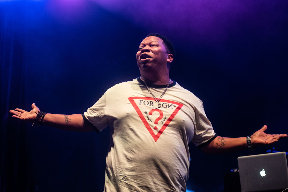 TO AIR IS HUMAN: Deante Hitchcock on stage at the Georgia Freight Depot during A3C 2018.
