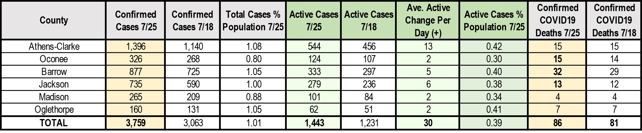 For the local Greater Athens area, here are the numbers from 12:01 a.m. ET this morning compared to the numbers shared on Thursday in advance of the July 4th travel: