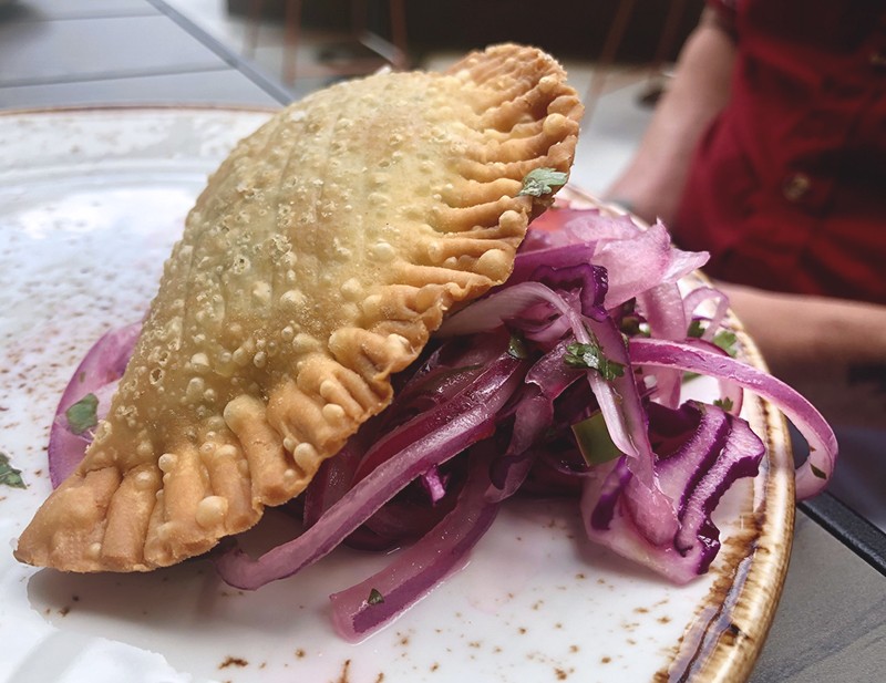 Most of the dishes at El Viñedo aren’t new to the city, but I’d venture that most are prepared with more finesse. The menu includes empanadas, arepas, sandwiches, ceviche, plates, and sides. I loved my empanada criolla, which was filled with finely chopped beef, green olives, and boiled eggs. The filling rocked, but what made this and other empanadas unique was the stellar, comparatively thick, slightly crumbly pastry shell. Other fillings include braised chicken, spinach and mushrooms tossed in béchamel, and ham and mozzarella. All also include the queso fresco that Latin Americans love.