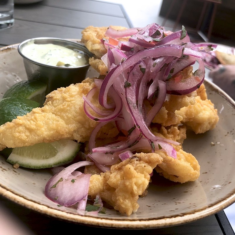 We didn’t try any of the three sandwiches. The Choripan has become a thing around town, so I’m on a break. It’s grilled Argentinian chorizo layered with butter lettuce, tomatoes, chimichurri, and more Duke’s mayo. The fried fish is also available as a sandwich. The only side we tried was the freshly fried yucca with the zippy salsa rozada. The people around town who serve cold fried yucca need to be imprisoned.