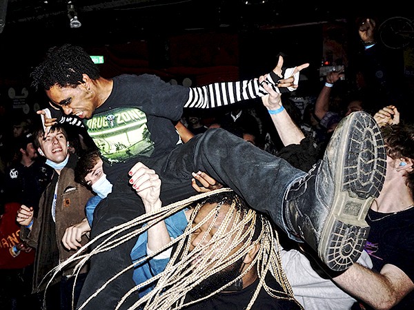 Because at an Upchuck show, none of that matters. Lyrical content comes second to energy. People are connecting and attempting to heal through a shared love of aggressive sound. I am certain that no more than two percent of the crowd had any idea what Upchuck vocalist, KT, was singing the entire night. Like most hardcore punk, the live show is a place where artists and attendees purge negative feelings in a storm of sweat and body parts. Upchuck is particularly good at inducing this form of group therapy. For no less than 40 minutes, human bodies are crashing into each other like waves brutalizing a ship’s haul. Bandmates spit cheap beer onto the audience, taunting the dog to bite back. Fists are thrown. Vocal cords are frayed. Blood is shed. Breathe in. Breathe out. Release …