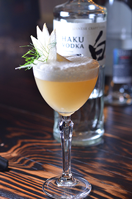 Come sip Yakitori Kona's cocktail with Haku Vodka, Yuzu Juice, Yakitori charred pear, cinnamon and Yuzu foam. Pairs nicely with Shishito Peppers and dark meat.