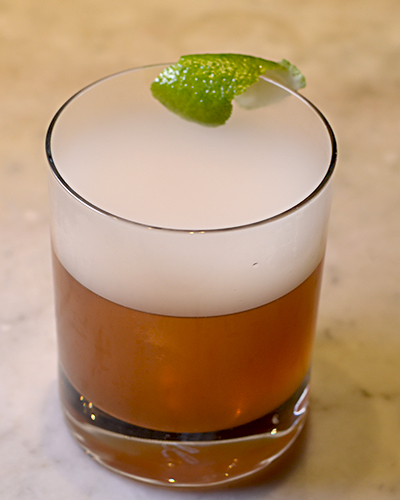 Can a cocktail be smokey, sexy and sippable? The Lion's Tail cocktail available at The Glenn Hotel's Lion's Den Bar answers 'yes, yes and yes' to that question. The Lion's Tail is made with Knob Creek Rye, Lime Juice, All Spiced dram, simple syrup, heat smoke chips, a big cube of ice and a lime peel garnish.