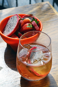 Muddled strawberries and dragon fruit