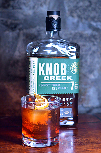 Knob Creek Rye Whiskey, Rolling Fork Heart Of Gold Rum, Creme de Cacao, Borghetti Caffe, St. Elizabeth Allspice Dram, Angostura Bitters and a dehydrated orange.