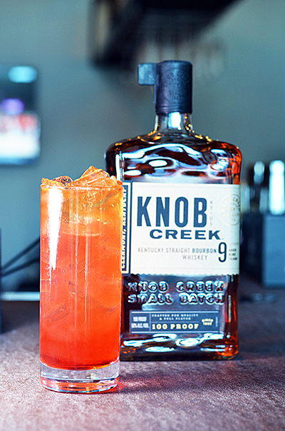 Knob Creek Bourbon, pineapple cordial, lime juice, simple syrup and Campori.