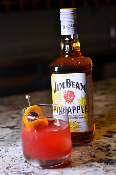 2 oz. Maker's Mark 46 French Oaked Bourbon Whisky, .75 oz blackberry syrup, two dashes of Angostura bitters and three dashes of orange bitters. Stir and garnish with orange peel and fresh blackberry.