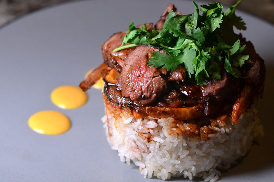 The Summer Old Fashioned pairs deliciously with The Pub @ EAV's Lomo Saltado pictured.