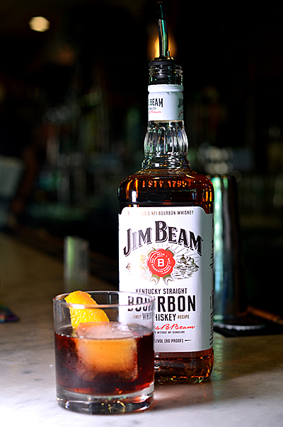 1 oz. Jim Beam Original, 1 oz. Cyanar, 1 oz. Punt E Mas, Orange Peel.