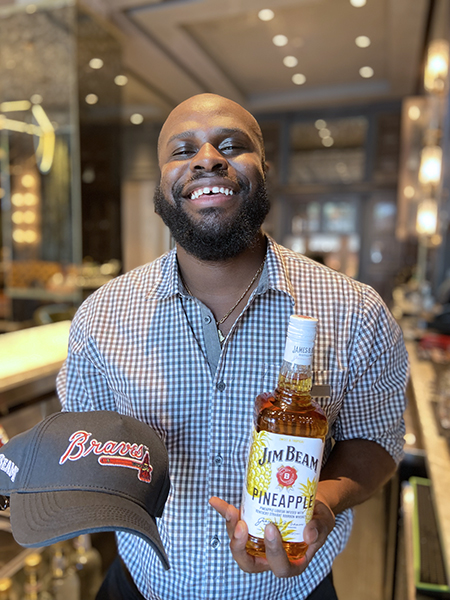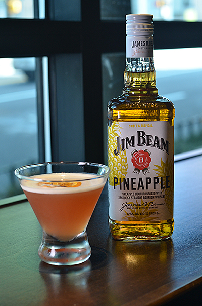 2 oz. Jim Beam Pineapple Bourbon, .50 oz. lemon, .25 oz. pineapple-habanero syrup, .25 oz. simple syrup, 2 dashes Fee foam (dry shake) - add ice - cold shake and float with Blueberry wine.