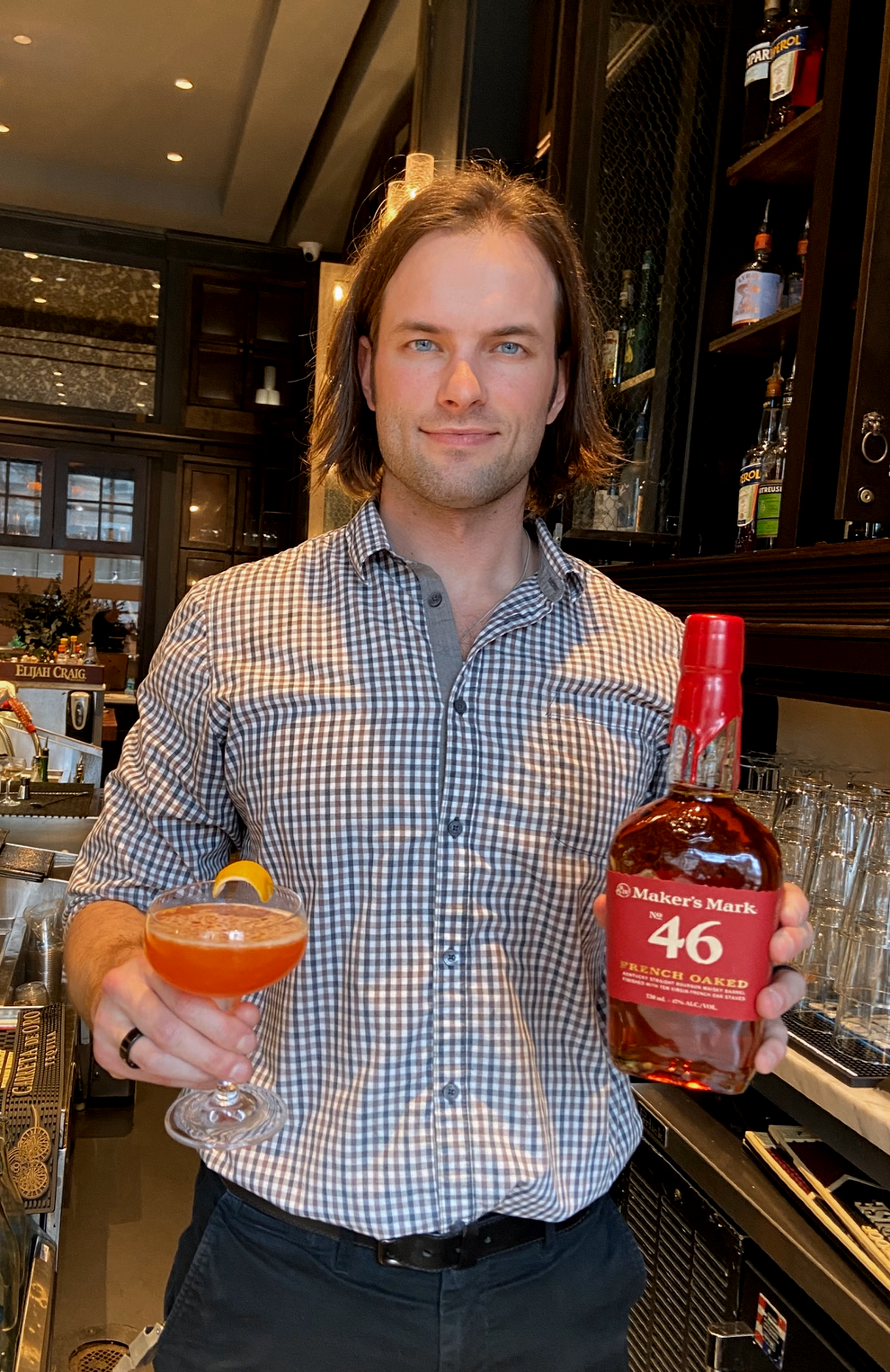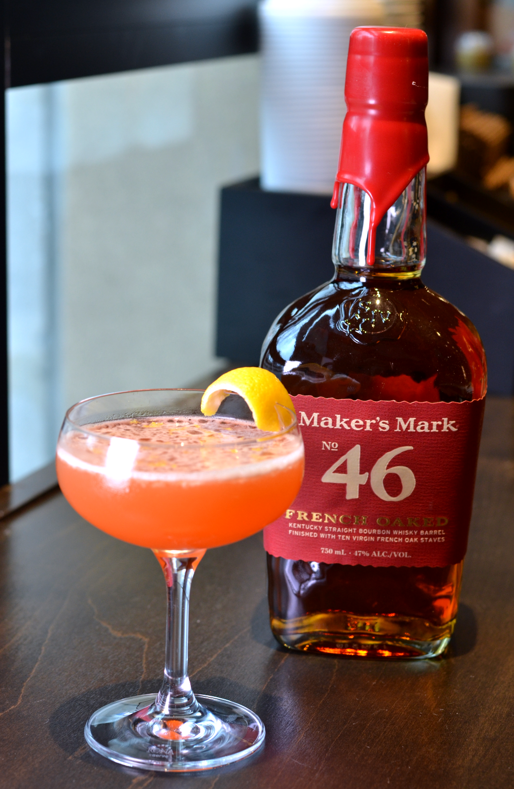 Maker's Mark 46 French Oaked Bourbon Whisky, Aperol, Montenegro liqueur, lemon and lemon zest.